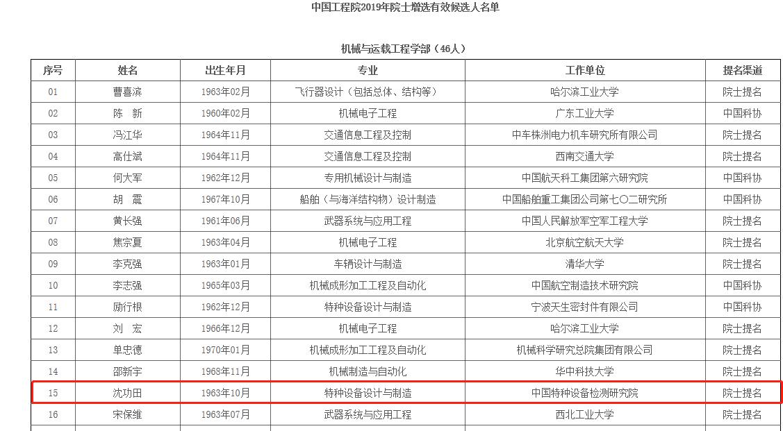 熱烈祝賀我會(huì)理事長(zhǎng)沈功田先生入選中國(guó)工程院2019年院士增選有效候選人名單