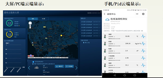 一體化設計,通電通油就能用,內部實時采集的數據經過分析處理后,由有線或無線方式發送到監控端及云端,可通過手機或電腦遠程對數據進行監控。