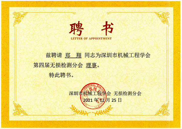 2021年12月25日,深圳市機(jī)械工程學(xué)會無損檢測分會第四屆年會在線上(騰訊會議)順利召開。來自深圳、廣州、珠海等地的理事及部分代表共49人參加了本次線上會議。深圳市亞泰光電技術(shù)有限公司受邀參加此次會議,并當(dāng)選深圳市機(jī)械工程學(xué)會無損檢測分會理事單位。