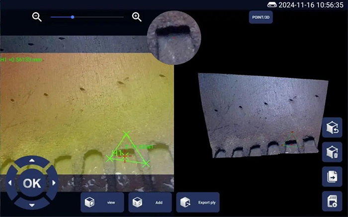 亞泰光電三維內(nèi)窺鏡的核心突破在于高精度三維建模與實時測量。其搭載的雙目立體成像技術(shù),可生成3D點云圖、深度圖和剖面圖,最小測量精度達到0.01mm,遠超傳統(tǒng)二維檢測的局限。