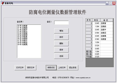 根據(jù)防腐電位檢測(cè)系統(tǒng)的要求,特別開發(fā)了一套數(shù)據(jù)管理系統(tǒng),主要用于電位測(cè)量數(shù)據(jù)的收集、存儲(chǔ)以及后續(xù)處理。整個(gè)軟件由主程序、相關(guān)說明文件和數(shù)據(jù)文件等組成。