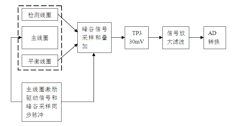 ① 激勵線圈輸入信號為4.8K正弦波,峰峰值22V;